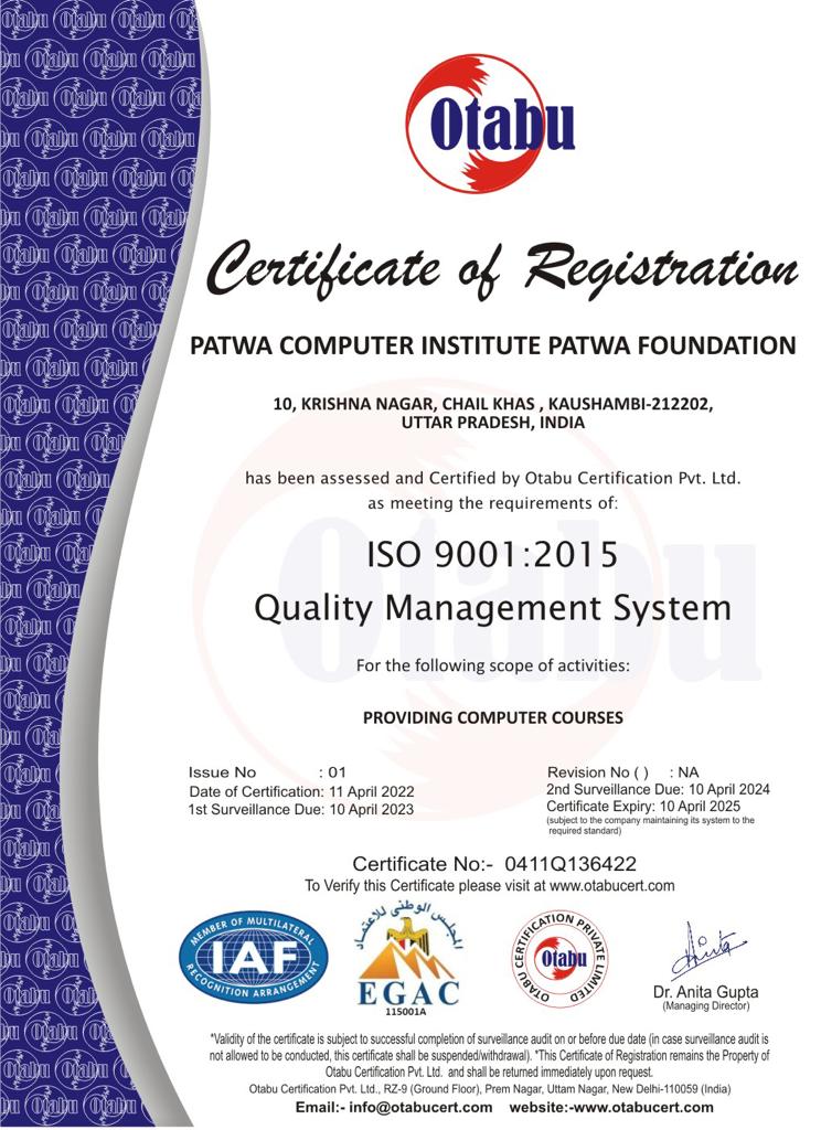 Patwa Computer Institute is the leading and No. 1 Institute in Kaushambi U.P in the field of Computer & Management. Patwa Computer Institute patwa foundation chail khas Kaushambi, U.P pin-212202 is a Technical & Management College with total commitment to quality and excellence in academic pursuite. Patwa Computer Institute is multi-faceted IT institution that started operation in many orbits to succeed at local, regional levels. Through it various divisions, Patwa Computer Institute etry try to provide total IT solutions to individuals and organizatios services, web based services for e-learning and e-testing and content design and development. Patwa Computer Institute College serves the best education since last decades. Patwa Computer Institute offers various Degree and Diploma Programs at the Bachelor and Master Levels. Patwa Computer Institute provides various IT, Management . Patwa Computer Institute constantly strives to provide a convenient study mode of affordable and anytime-anywhere quality education in a technology rich environment. Patwa Computer Institute is the college that never compromise its Education Quality.